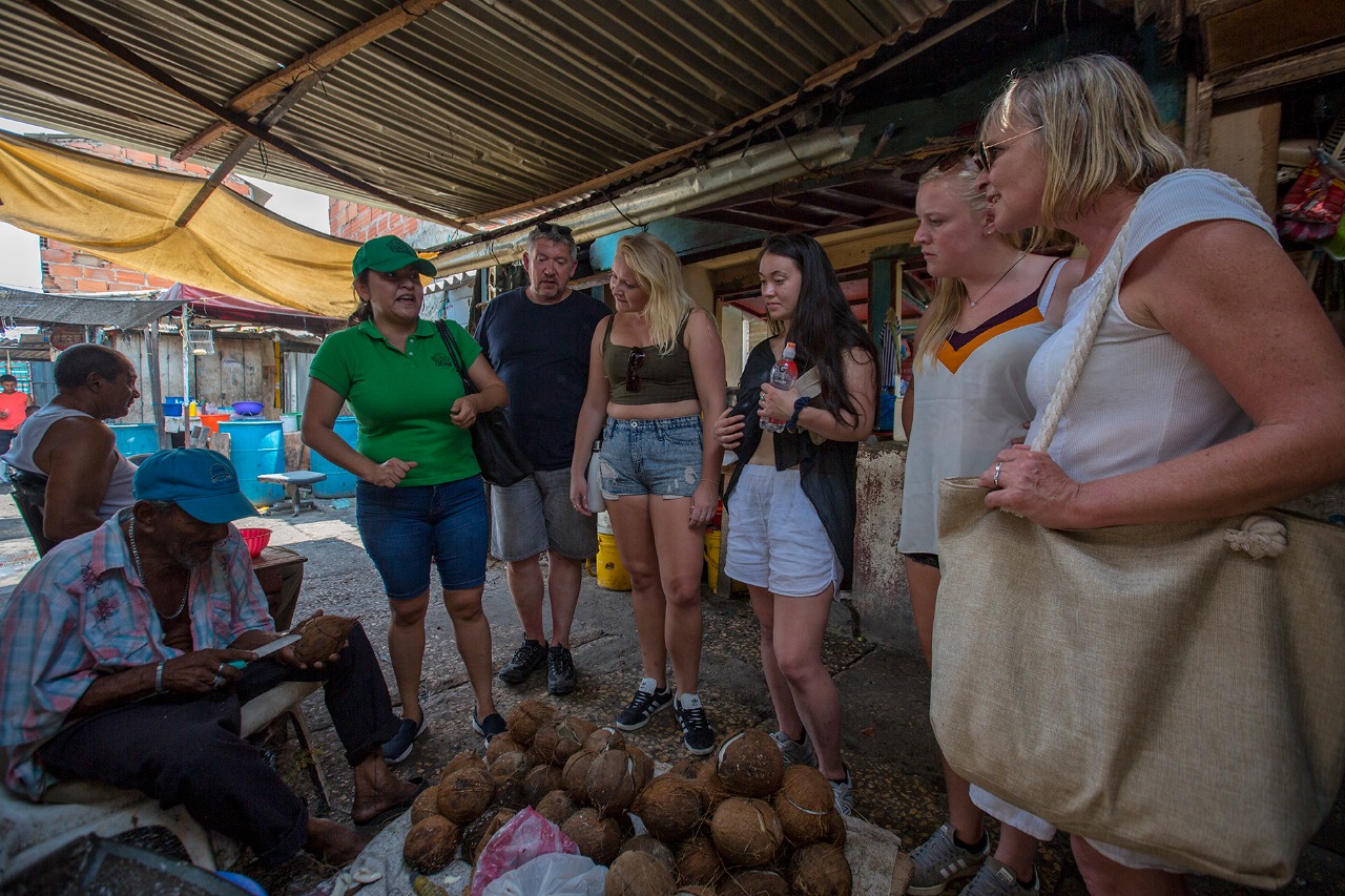 We will also taste the soda and the local beer because with the heat of this place it is important keep cool. Here we will learn about the local rhythm of the champeta (the sound of the Colombian Caribbean neighborhoods that Shakira danced to in the Super Bowl 2020) we will learn the reason for its name and the impact of its sound on the different social classes. We will visit Cecilia’s restaurant, the famous chef who made Anthony Bourdain fall in love with her recipes and Runner, the most famous poster designer. Living this experience in the local market teaches us to know the true culture of this beautiful city.